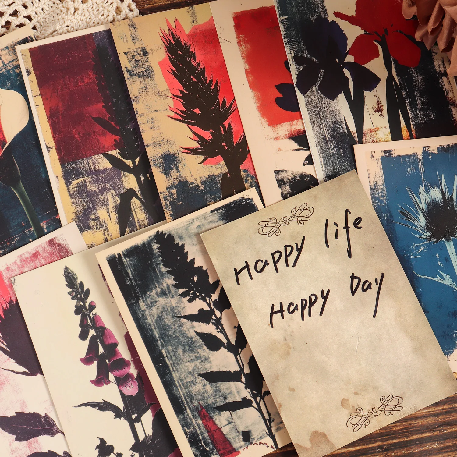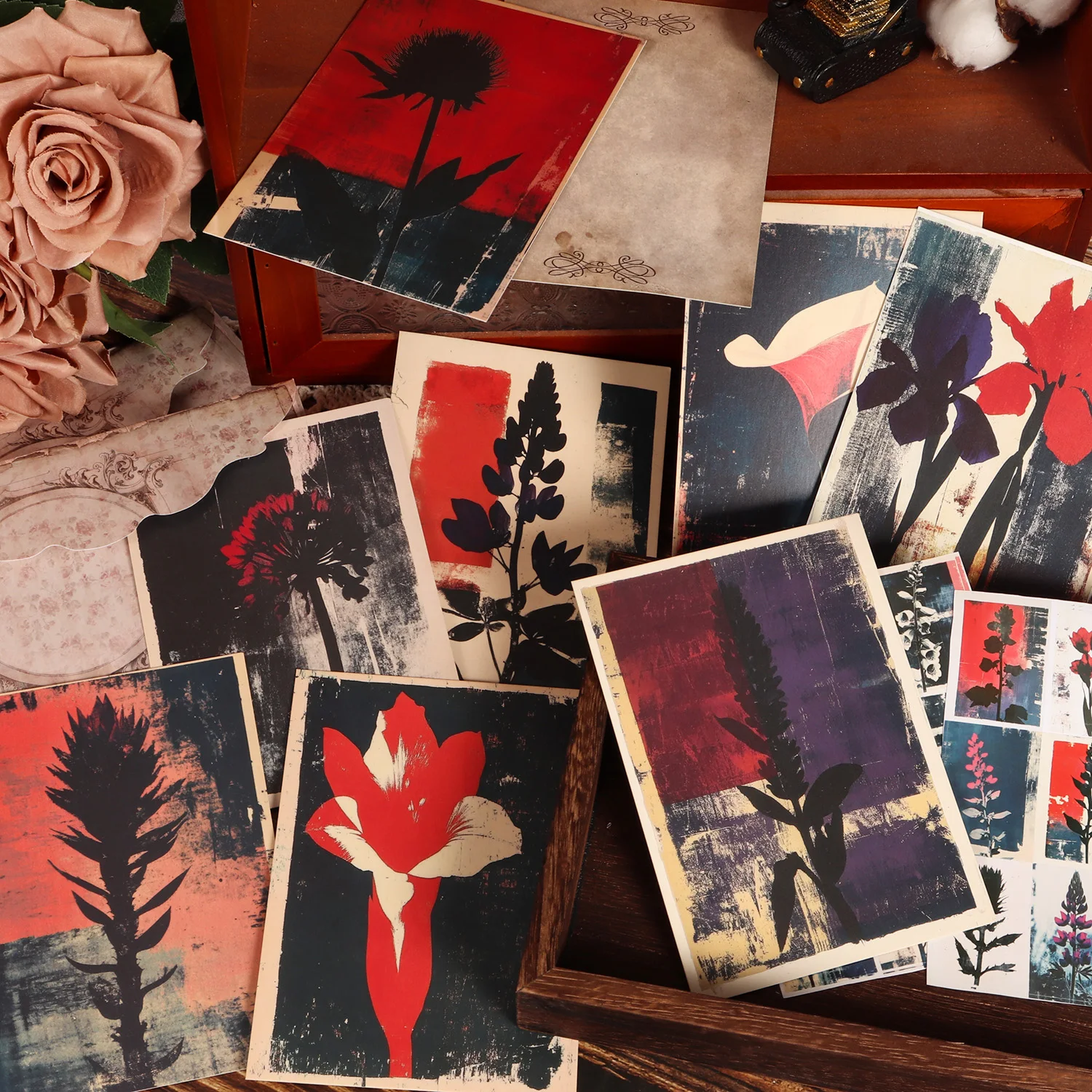 16cards, 4envelopes, 36stickers Floral Botanical Double-sided Writable Thick Cardboard Set, for Scrapbooking Supplies, Crafts