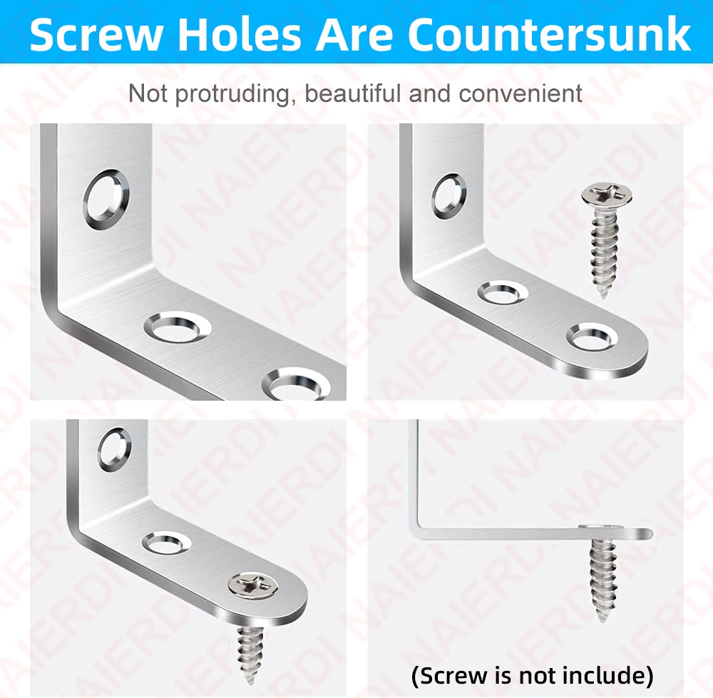 NAIERDI 10 Pack Corner Brace Stainless Steel 90 Degree Angle Corner Brackets L Bracket Firmware for Wooden Shelves,Chairs,Tables